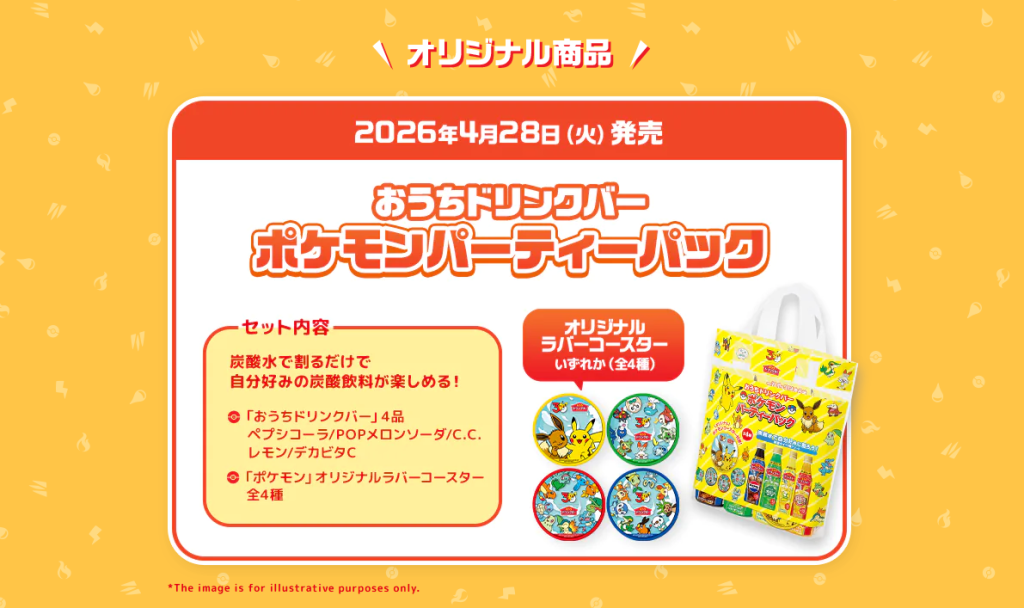 The new item, titled the “Home Drink Bar Pokémon Party Pack”, will launch in Japan on April 28th, 2026.